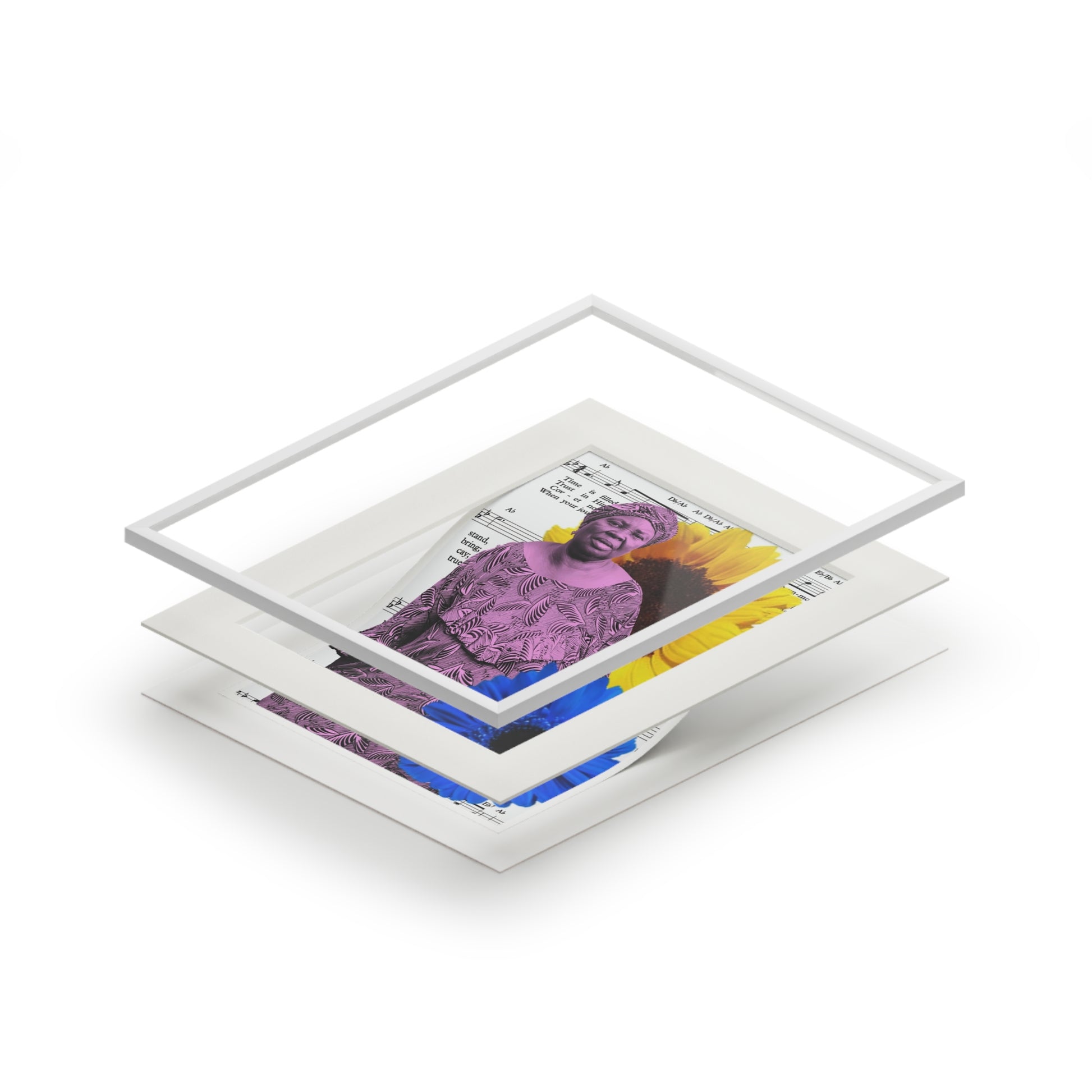 Celebrate heritage, faith, and resilience through Held in Song, a vibrant series of digital prints by artist Simone Anthony-Brown. Each piece layers powerful Black and white imagery of Black women with the timeless beauty of African American hymns, set against "Hold To God's Unchanging Hand" sheet music and accentuated by vibrant florals. These prints honor the stories passed through generations—visually and musically—with bold color and deep reverence.