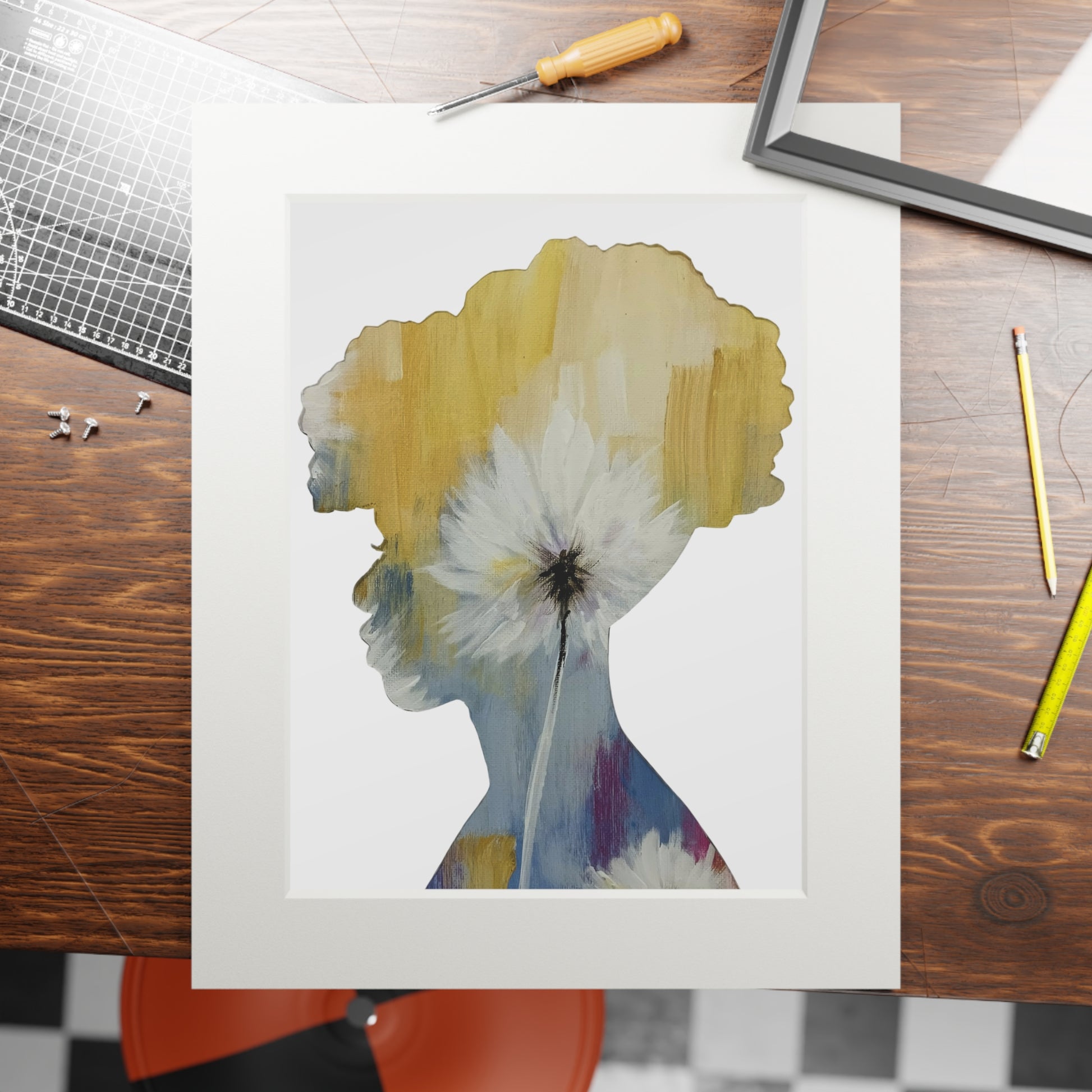 Recycled painting, Floral silhouette art, Black woman art print, Sustainable artwork, Afrocentric decor, Woman portrait print, Empowering home decor, Feminine wall art, Black girl magic, Inspirational decor, Modern boho print, Unique gift idea, Abstract floral art, Elegant wall decor, Gift for her, African American artist, Woman silhouette, Eco-friendly art, Mixed media print, Storytelling art, Wall art decor, Painterly print, Upcycled art, Cultural pride art, Creative renewal